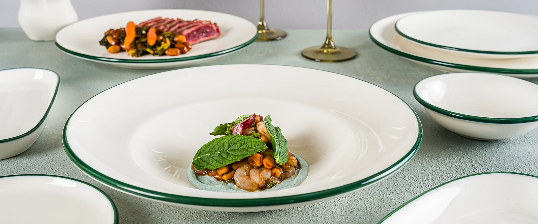 Porselenin zarif duruşuna rengarenk rimler eşlik ediyor. Şık tasarımı onu hemen her yemeğe uyum sağlayacak bir seri yapıyor. Abartısız ve şık... Bir ressamın tuvalden beklentisi gibi Linea da şeflerin beklentisini fazlasıyla yerine getiriyor. Koleksiyon, Albufera serisi ile kullanılabilir olup; mavi, bordo, yeşil ve siyah olmak üzere farklı renk seçeneklerine de sahiptir.
