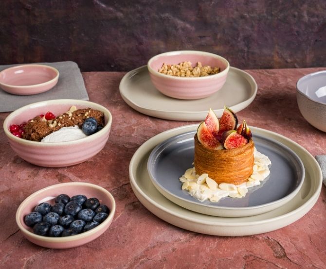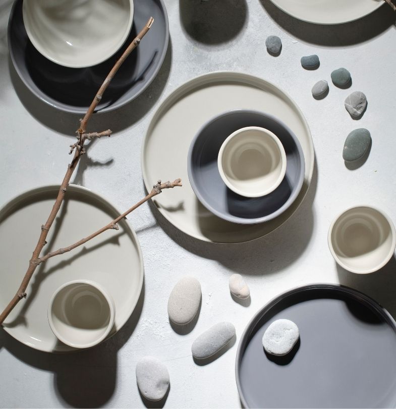Each piece in our collections brings to life an amorphous design, unique and unrepeatable like raindrops, and as perfectly formed as the veins of a leaf. Pieces in our Cras and Ground collections are crafted with the principle of giving back to the earth what we’ve taken, and our Premium Vitrified products—designed with an edge-chip guarantee and a handmade feel—create perfect presentations with sustainability in mind. Together, the harmony of bl